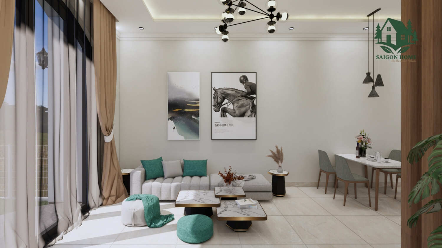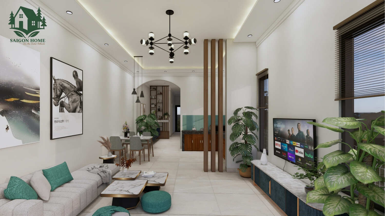 Với diện tích xây dựng khoảng 95m², Saigon Home được chia thành các khu vực chức năng rõ ràng: